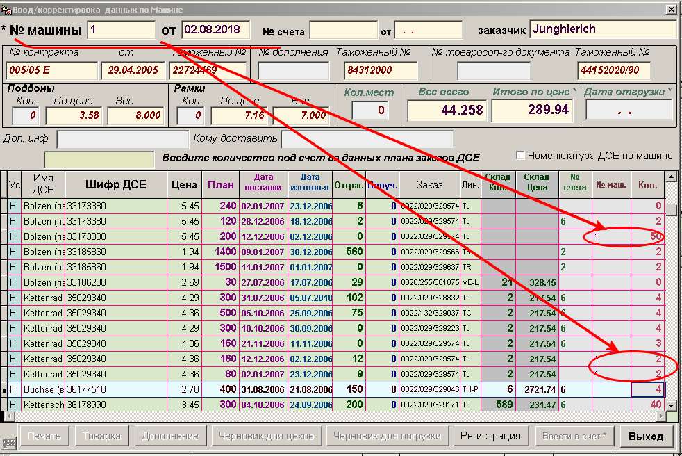 Ввод данных количества по ДСЕ, под будущую машинно-отгрузку. Ввод количества, разрешен только на ДСЕ не занятых под другие машины или счета.