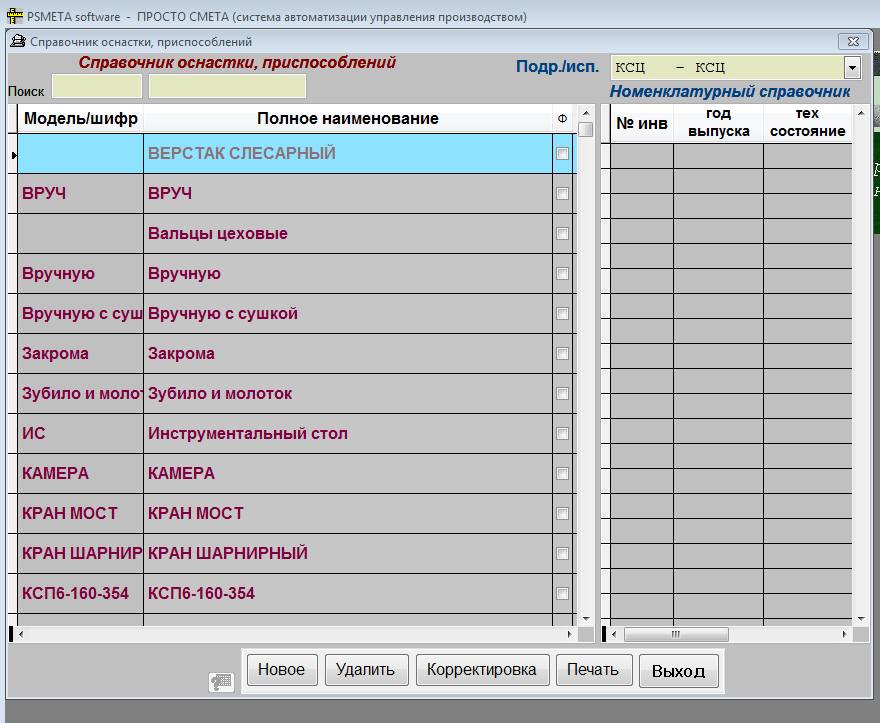 Справочник оборудования. Данные используются, когда формируются технологические процессы в Модуле Технология PSMs. (по потребности)