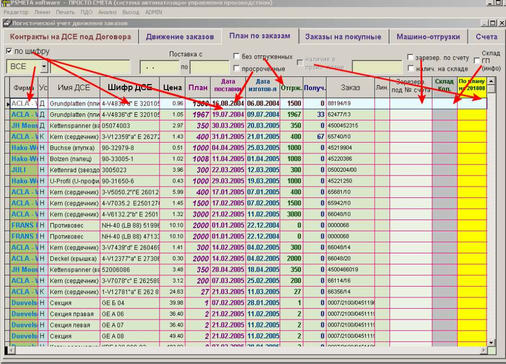 PSM system - Модуль План системы ЛогистикаПредназначен для управление данными по заказам и срокам их