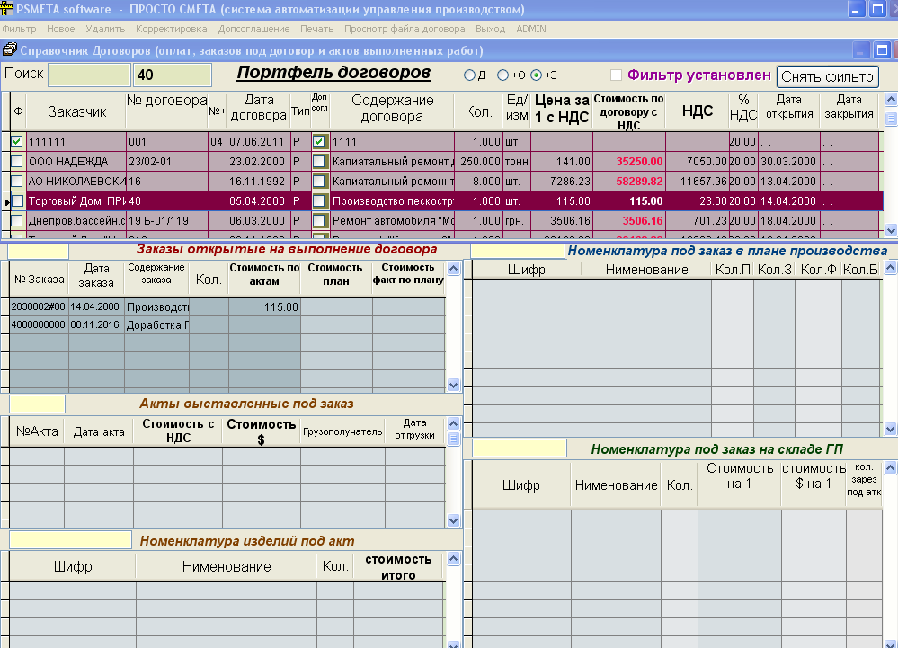 PSMs software.Система автоматизации процессов управления производством Процессы автоматизации: учет данных конструкторско-технологической подготовки производства, учет и формирование данных по цене и себестоимости, учет договоров (позаказный учет) , планирование производства, учет данных движения изделий в производстве, учет материалов и их рыночной цены, формирование данных по складам (включая склад готовой продукции), учет кадрового состава.