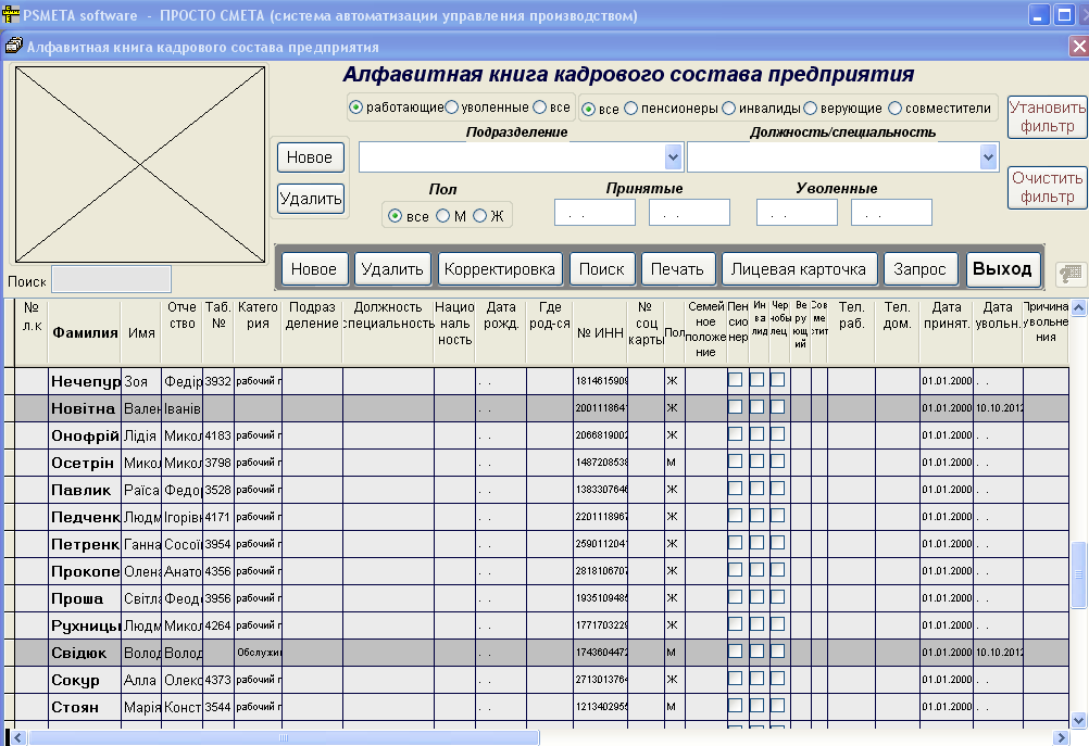 В состав системы PSMs входит контур PSMs Кадры – учет и сопровождение данных по кадровому составу. Система PSMs имеется гибкую систему настройки, как на уровне самого предприятия (какие Контура системы будут использоваться), так и на уровне клиентов пользователей Использование системы PSMs актуально в единичном и мелкосерийном производствах, предприятиях ремонта, частных производственных предприятий, для учебных целей.. Система использовалась на Киевском судостроительном заводе и заводе им. Лепсе..